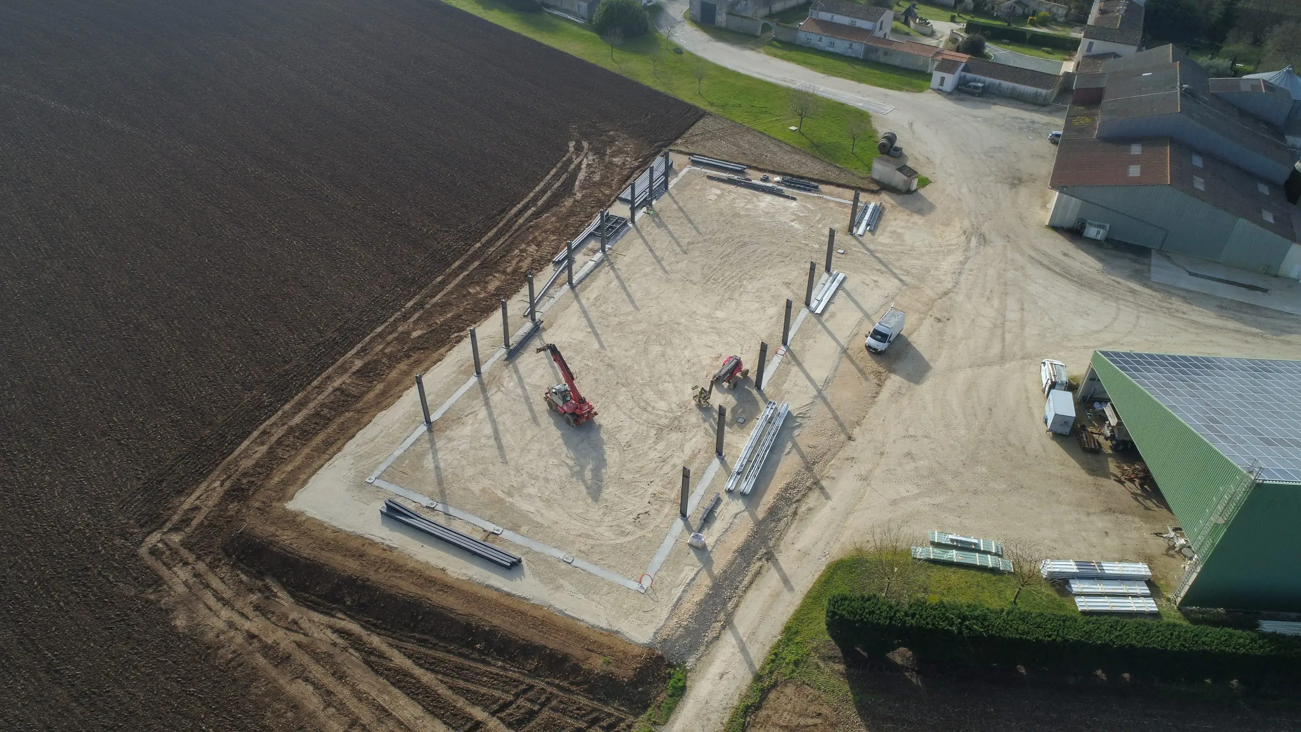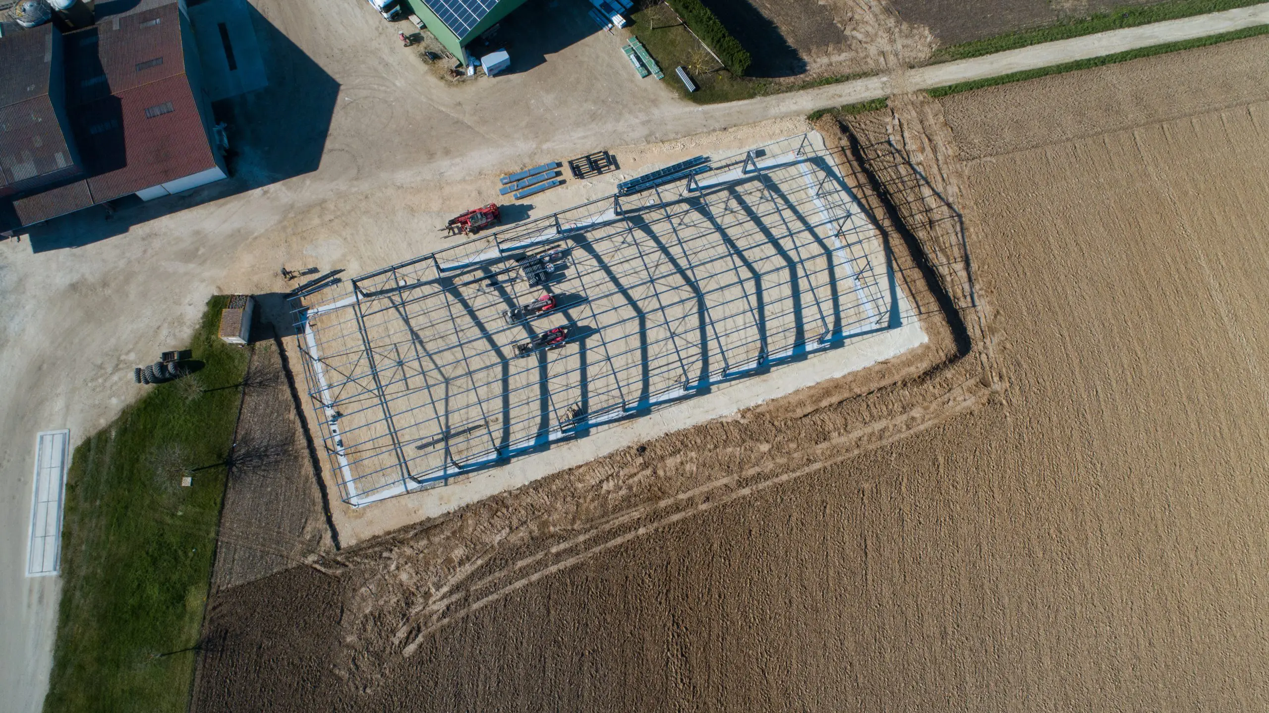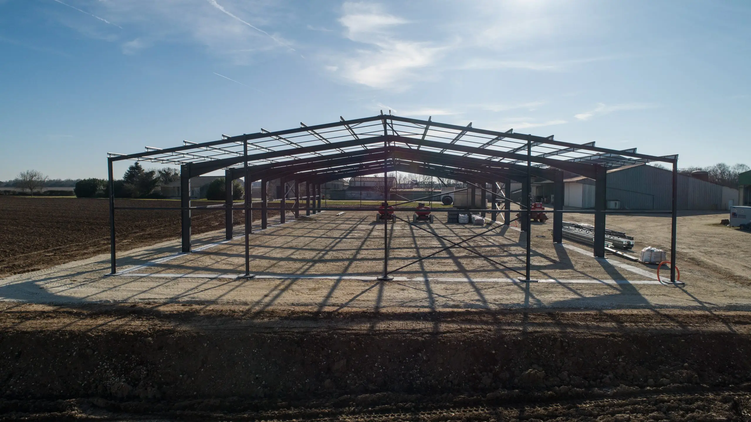 Avec plus de 48 tonnes de charpente métallique peinte, notre client a bénéficié d’un projet sur mesure pour son activité et pour la production de sa centrale photovoltaïque.